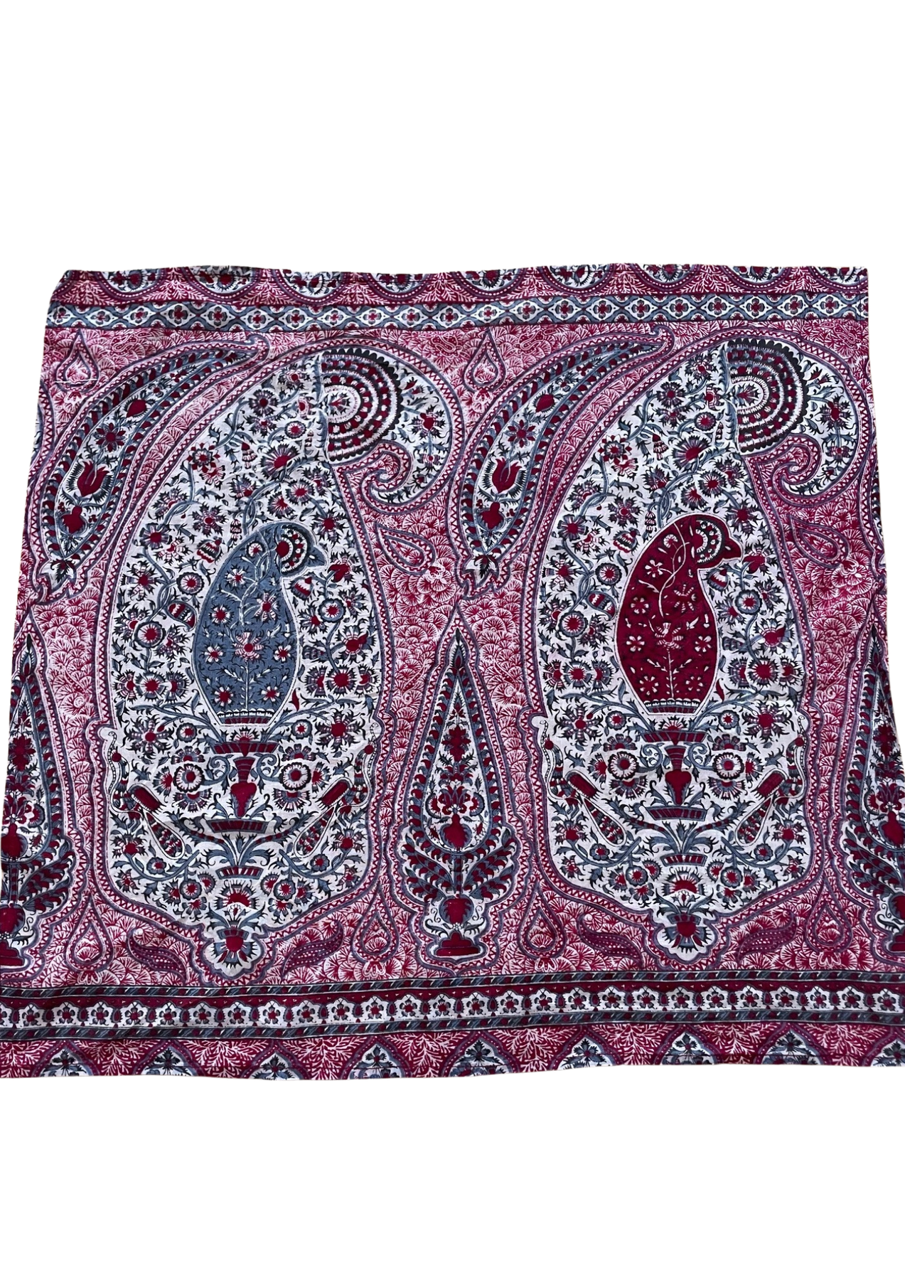Plongez dans l’esprit bohème chic 🌿 avec ce foulard Antik Batik aux somptueux motifs cachemire/païsley dans des tons bordeaux, bleu et blanc 💙❤️🤍.