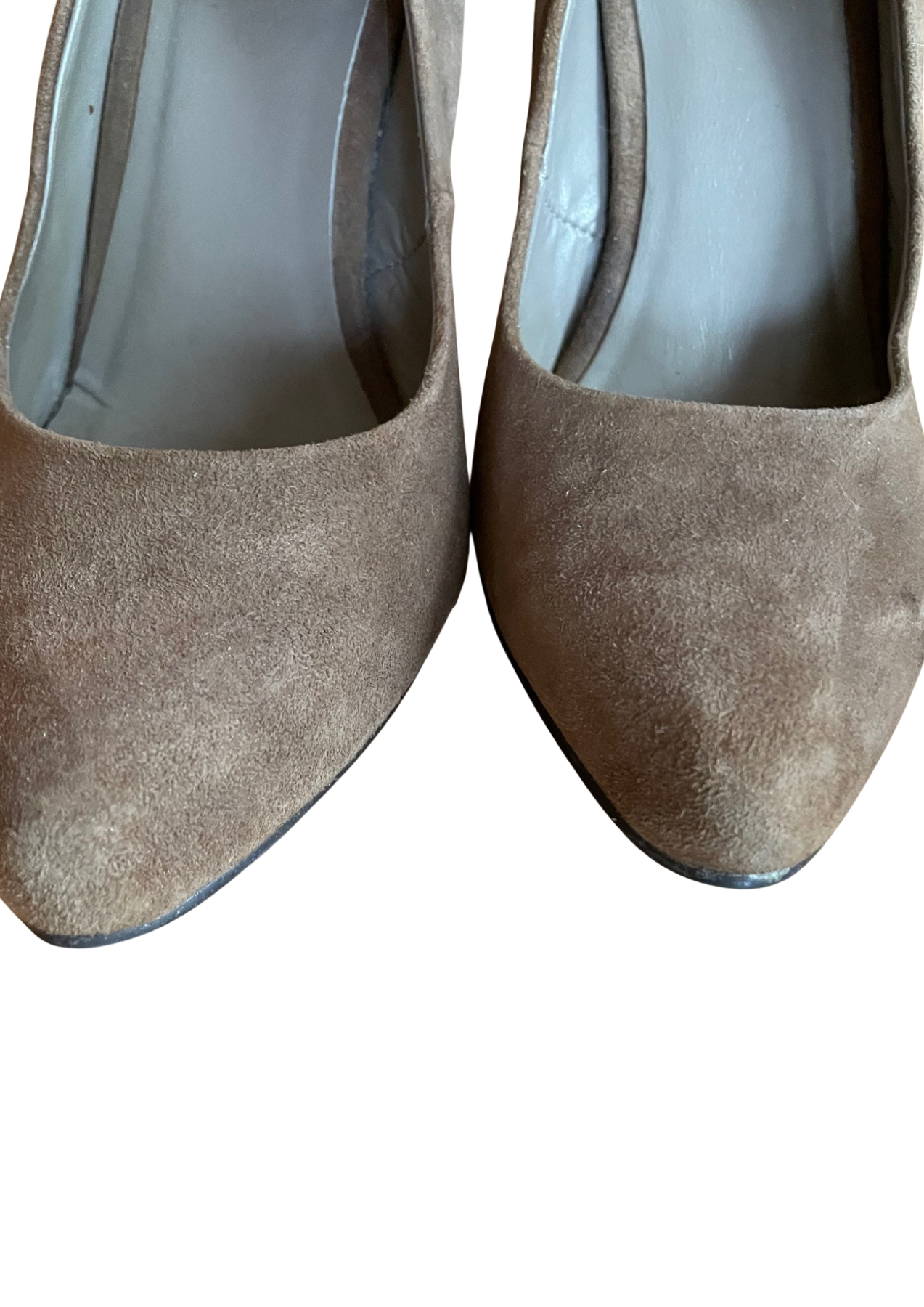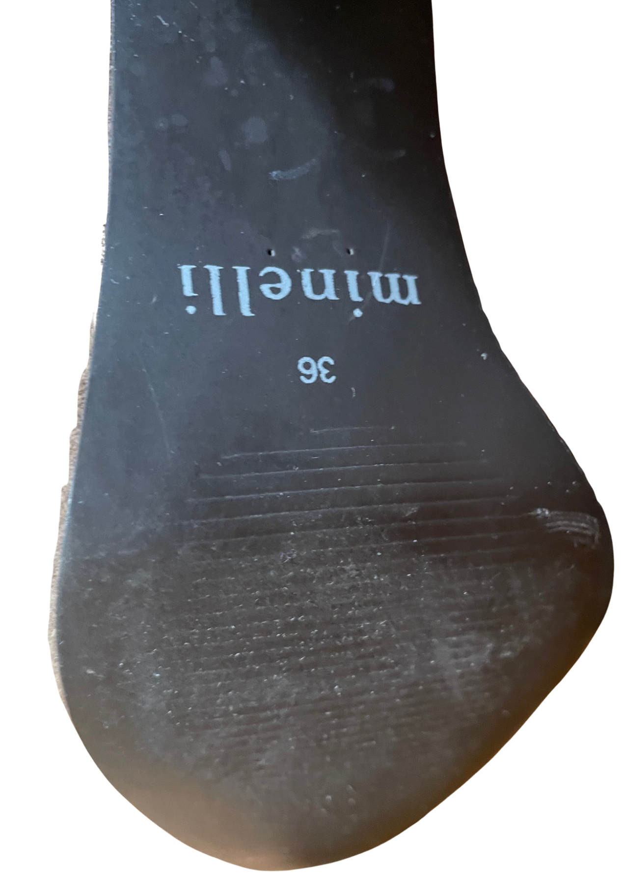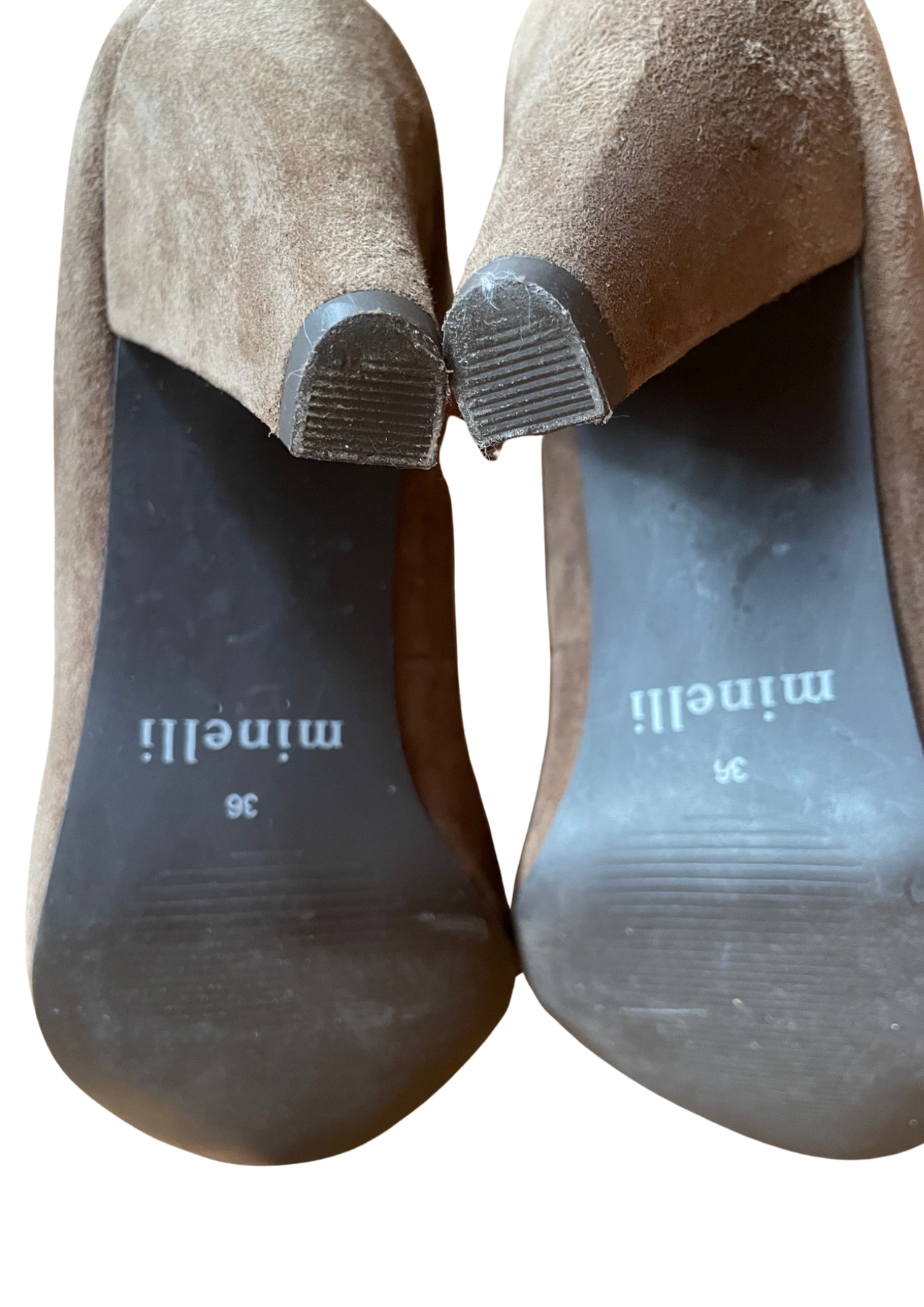 Ces escarpins Minelli en daim taupe allient sobriété et raffinement 🌸. Leur forme à bout pointu et leur talon moyen subliment la silhouette tout en assurant un confort optimal au quotidien.