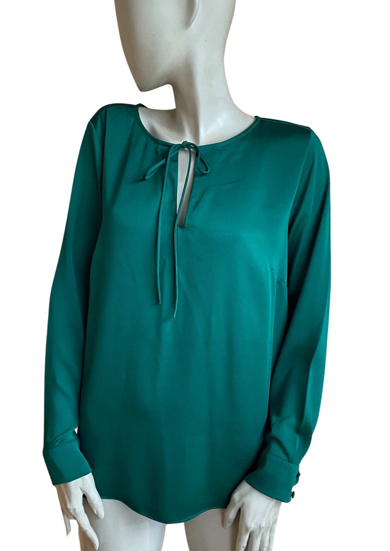 ✨ Blouse fluide vert émeraude à lien col Taille 44 🌿