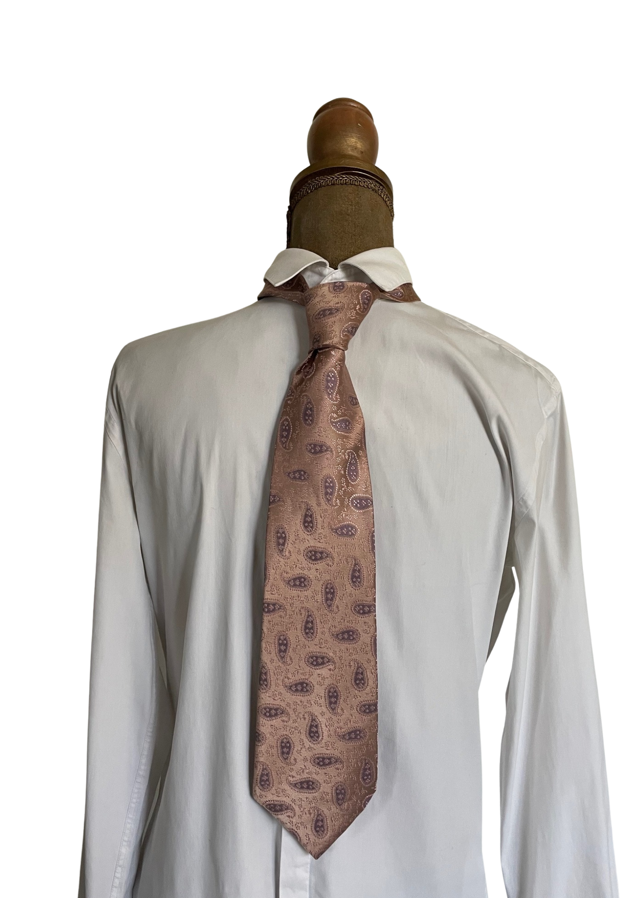 Son motif paisley rose poudré et mauve apporte une note d’élégance subtile, parfaite pour un look habillé, une cérémonie ou un style professionnel soigné.