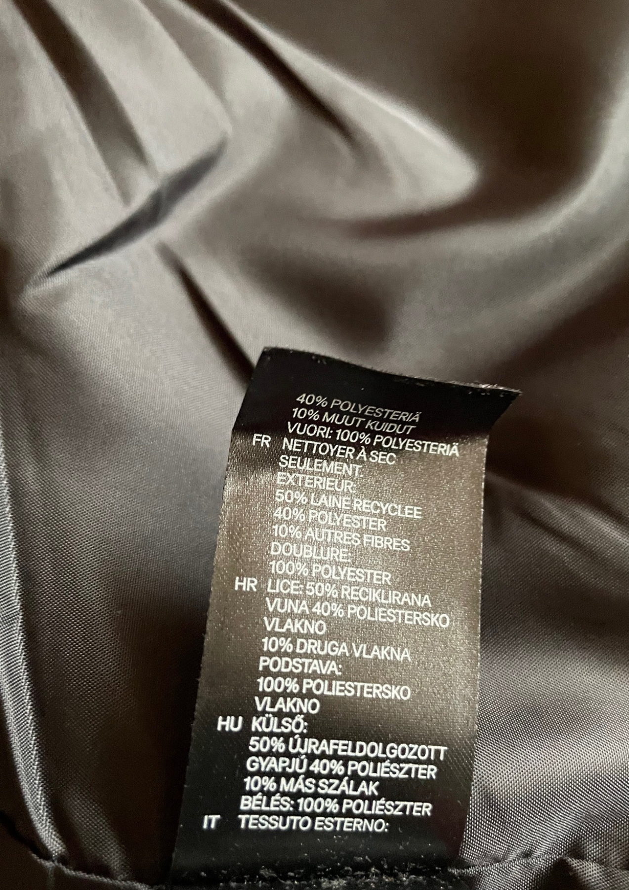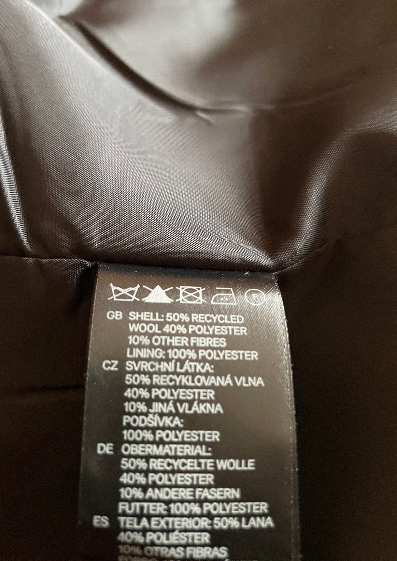 Taille : EUR 34 Longueur: 82 cm Aisselle à Aisselle: 44 cm Carrure: 34 cm Longueur des manches: 60 cm Matière extérieure : 50% laine recyclée, 40% polyester, 10% autres fibres Doublure : 100% polyester Entretien : nettoyage à sec État : Très bon état ✔️