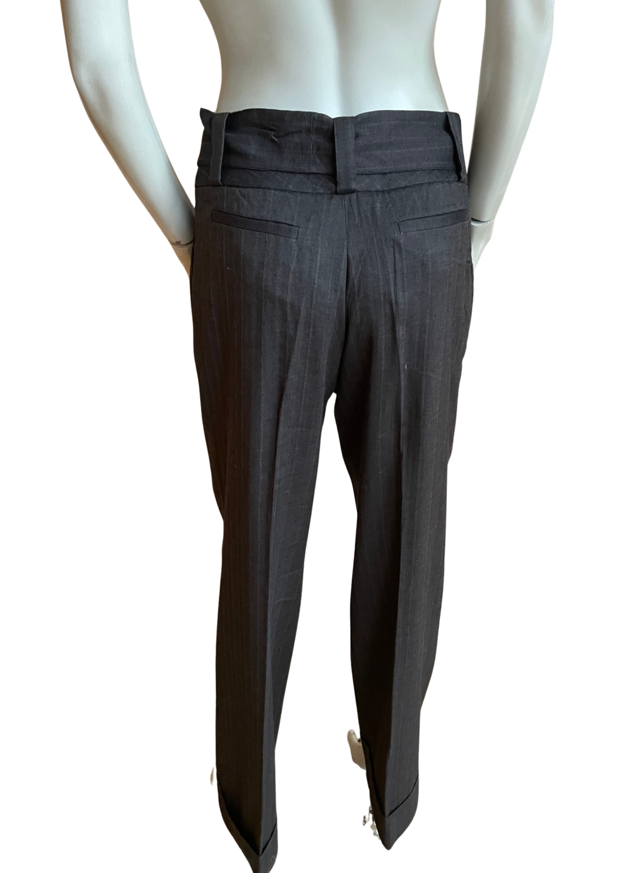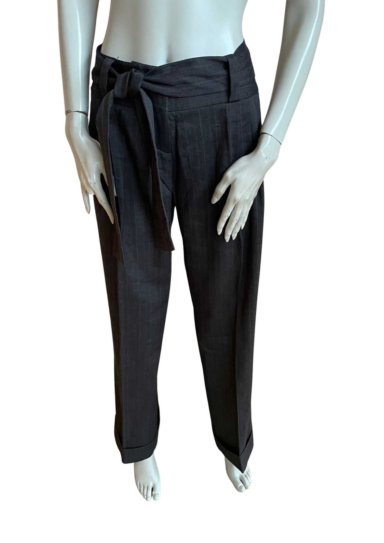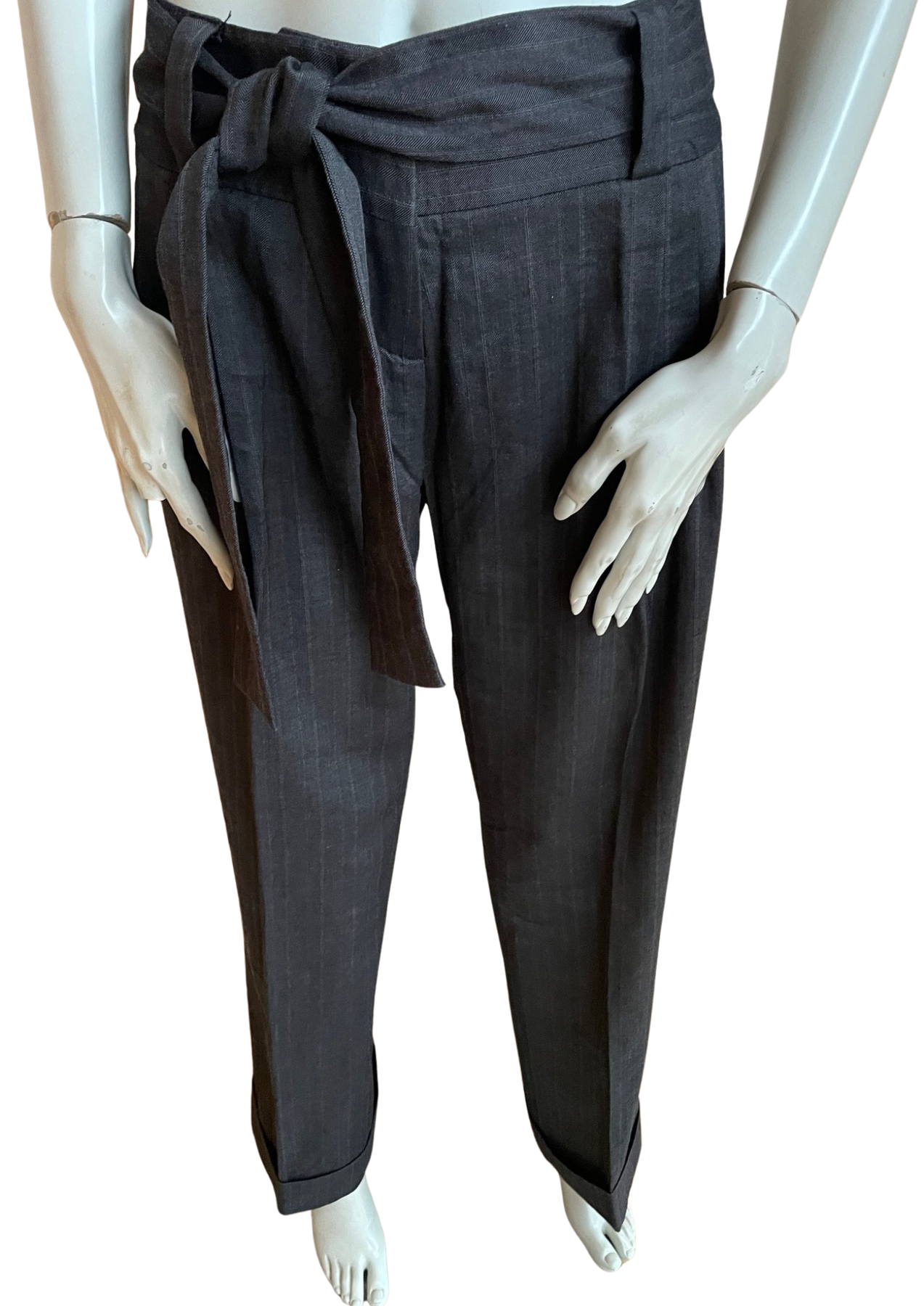 Pantalon tailleur gris rayures fines LOLA ✨ Taille 40 – Coupe élégante & ceinture à nouer