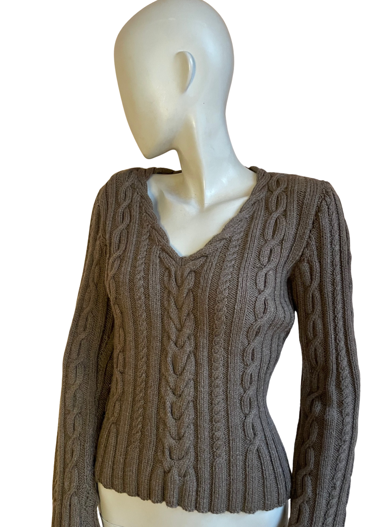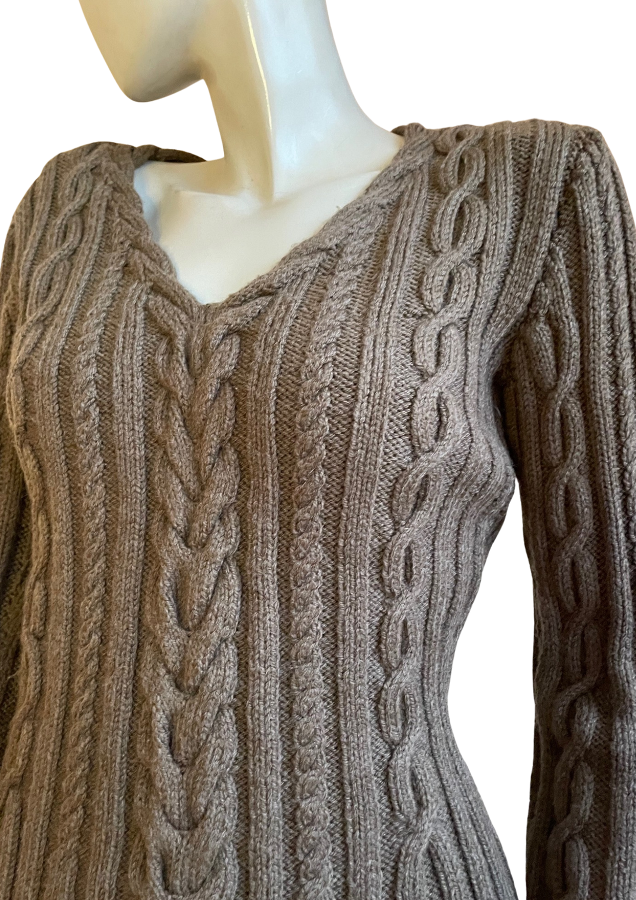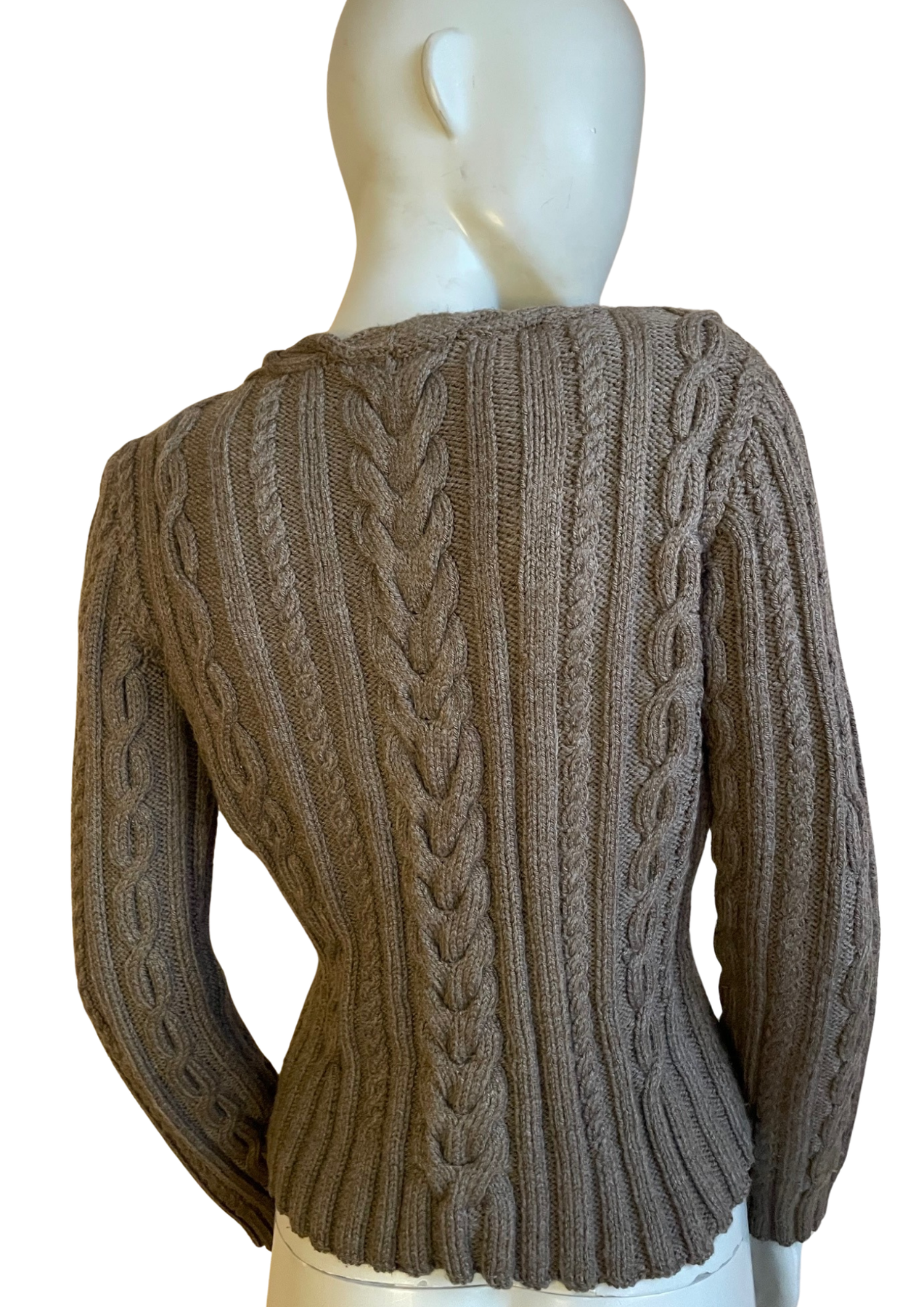 🧶 Maille épaisse et texturée 🤎 Motifs torsadés inspirés des pulls irlandais ✨ Coupe près du corps qui souligne la silhouette 🍂 Teinte taupe naturelle, parfaite avec denim, noir ou blanc ❄️ Idéal en automne/hiver ou en superposition chic