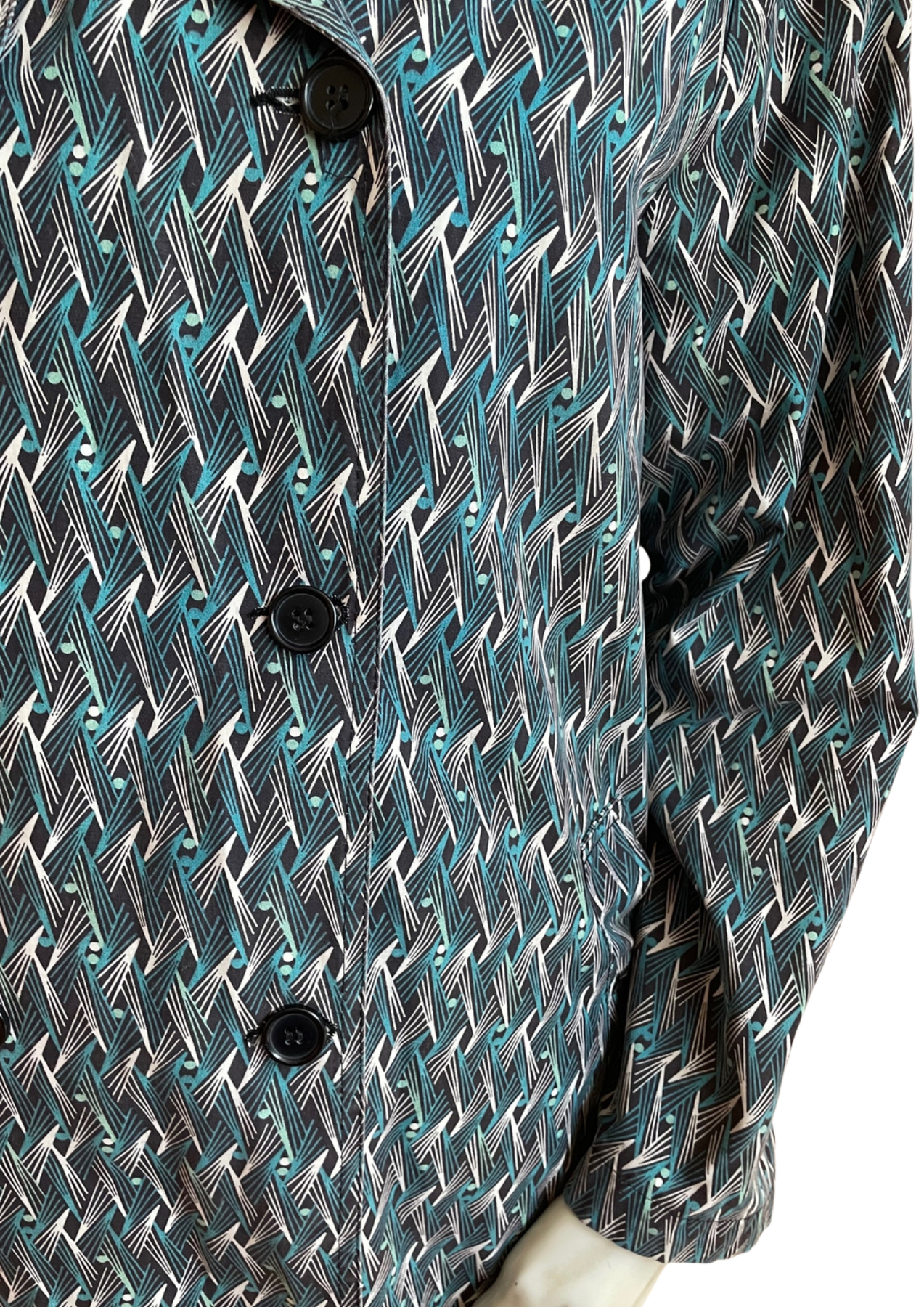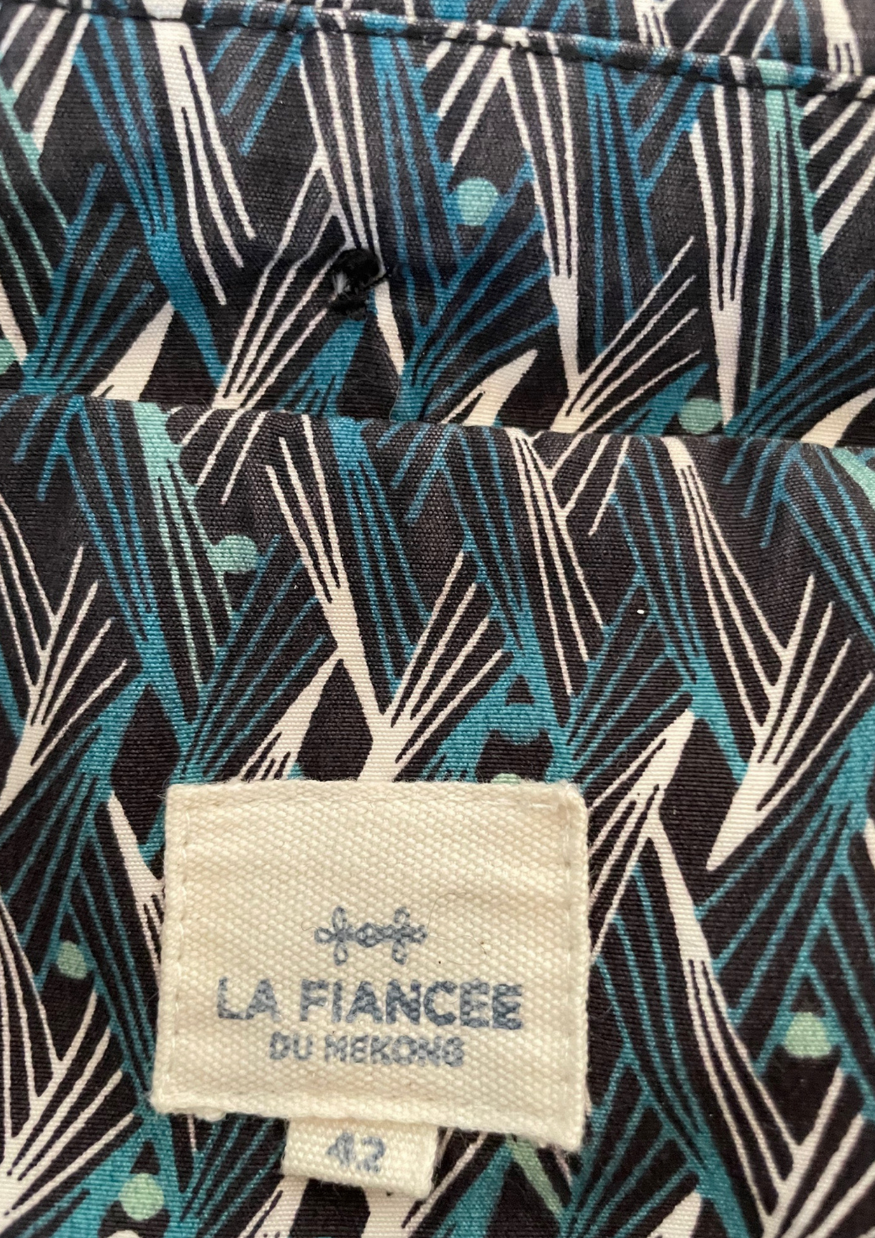 Craquez pour cette veste / trench LA FIANCÉE DU MEKONG 💙 au style unique et graphique, parfaite pour apporter une touche d’originalité à vos looks du quotidien.