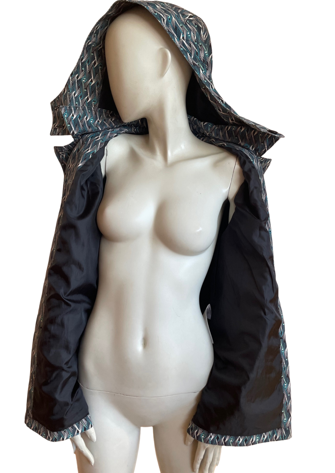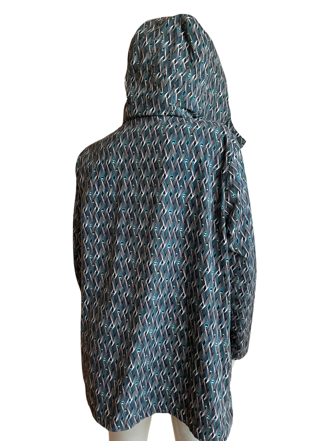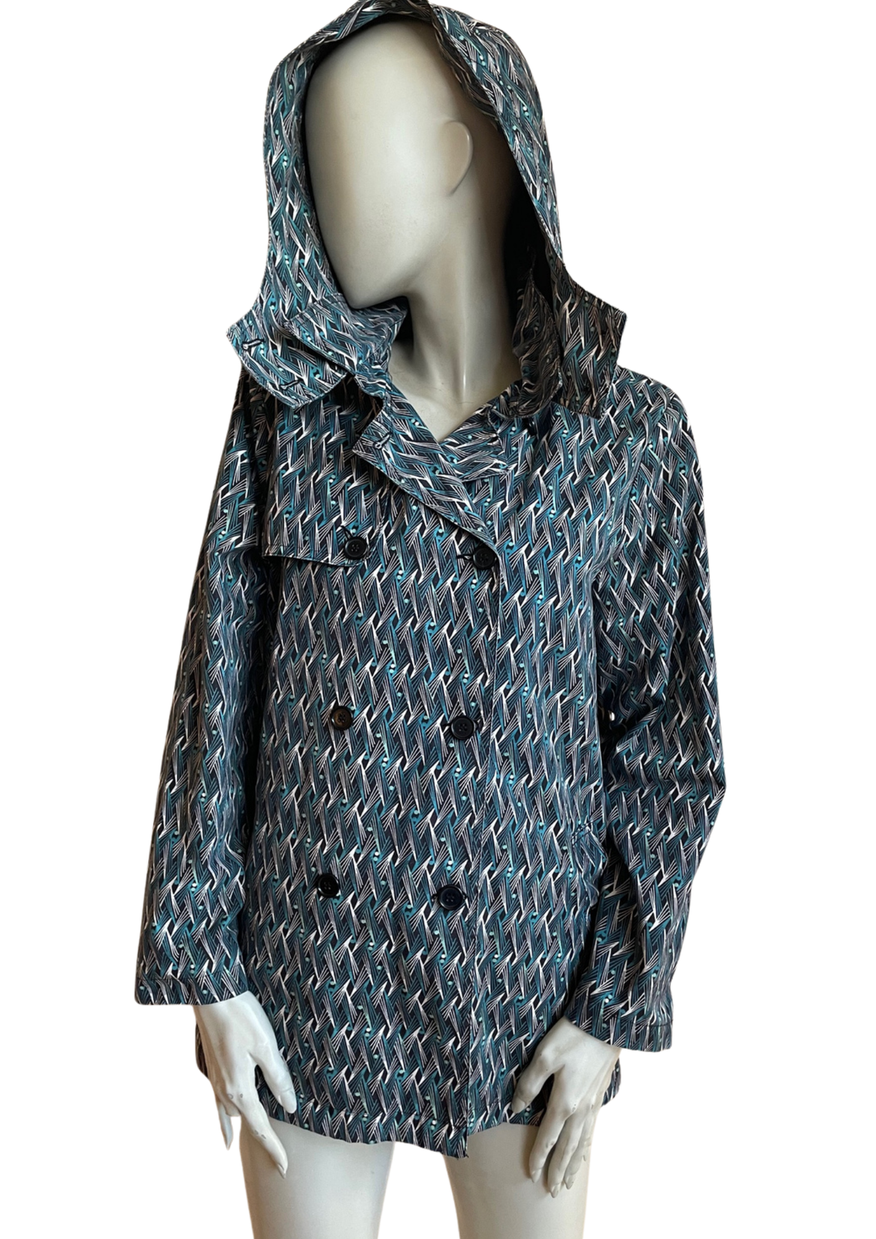 Son imprimé géométrique bleu, noir et blanc 🎨 lui donne un esprit à la fois moderne et arty, signature de la marque. La capuche structurée ajoute du caractère et une allure contemporaine, idéale pour la mi-saison 🍃