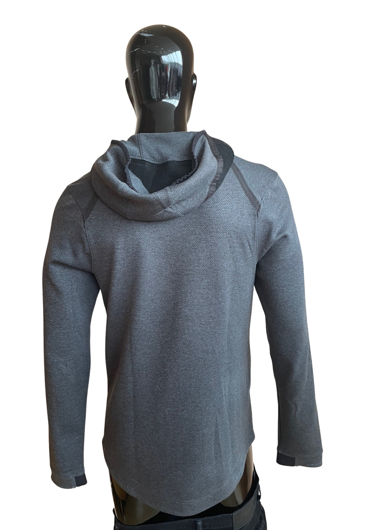 👕 Détails : • Marque : Nike • Ligne : Dri-Fit • Taille : S Longueur: 70 cm Aisselle à Aisselle: 54 cm Carrure: 47 cm Longueur des manches: 73 cm • Couleur : gris chiné • Veste zippée • Capuche avec panneau mesh respirant • Manches longues ergonomiques • Logo Nike poitrine