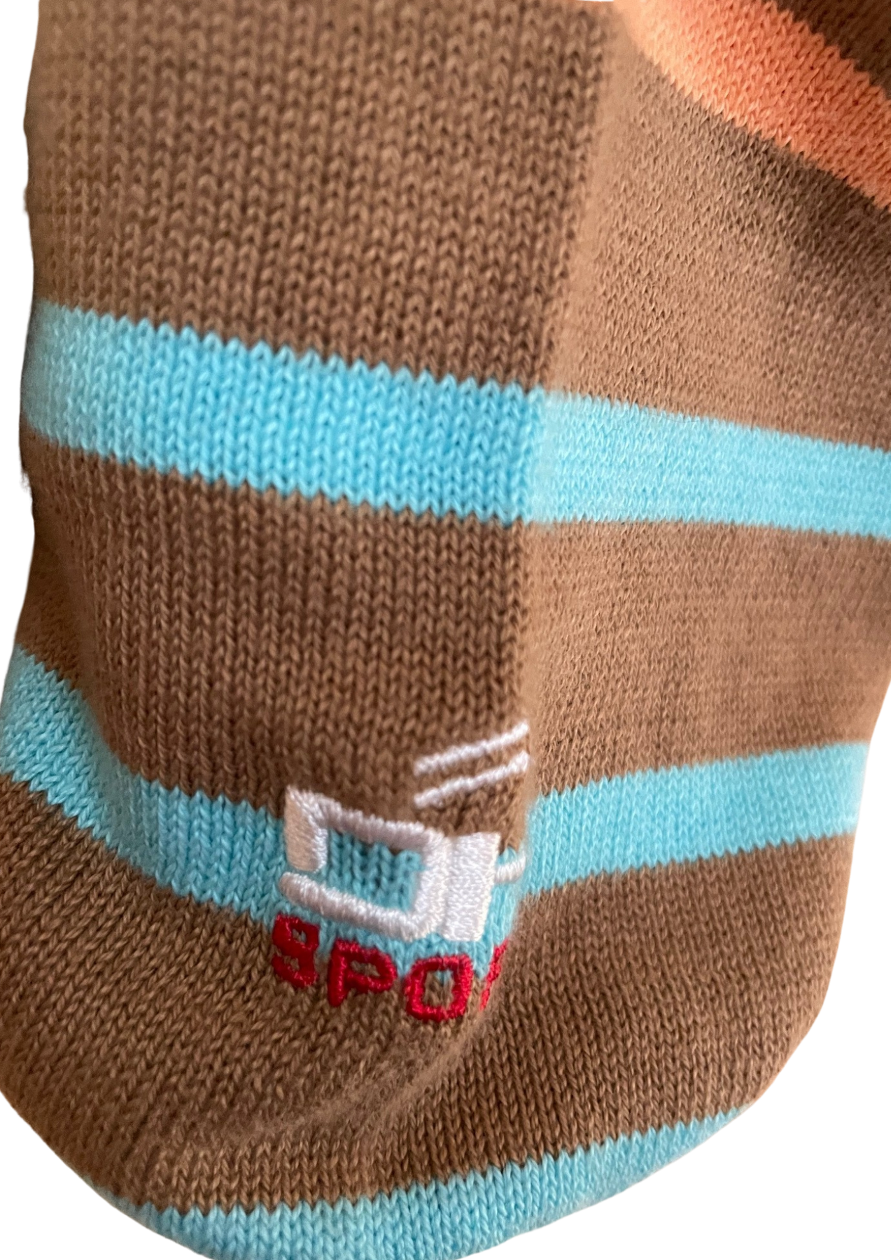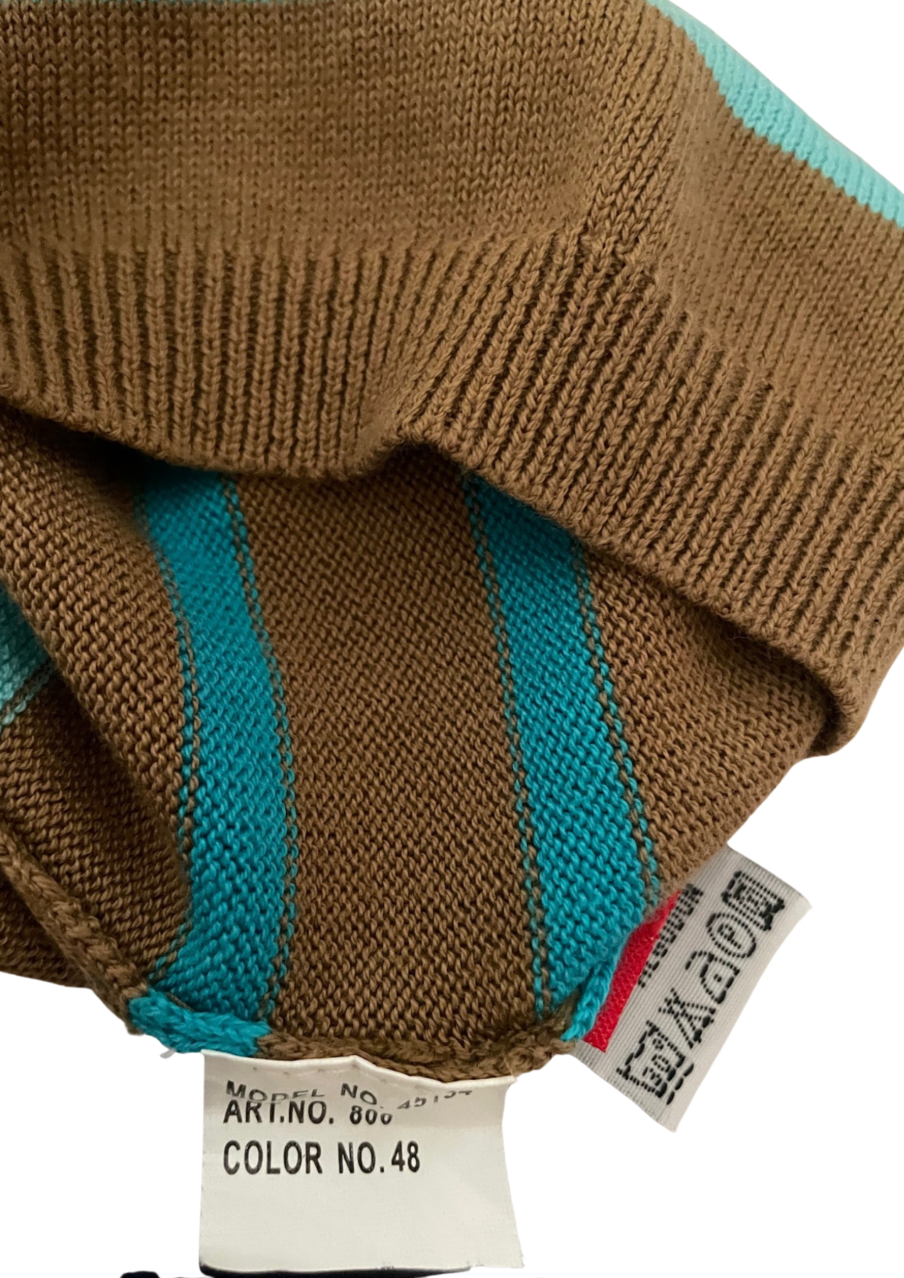 • Composition : 100 % coton• Couleur : marron à rayures turquoise, orange et blanches• Coupe droite, col en V• État : excellent état 💫