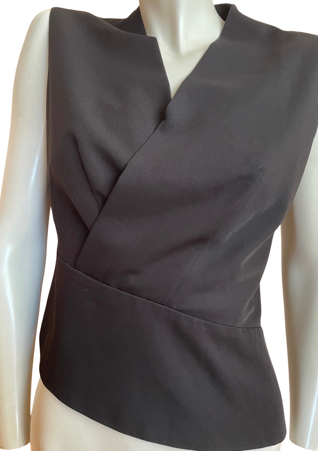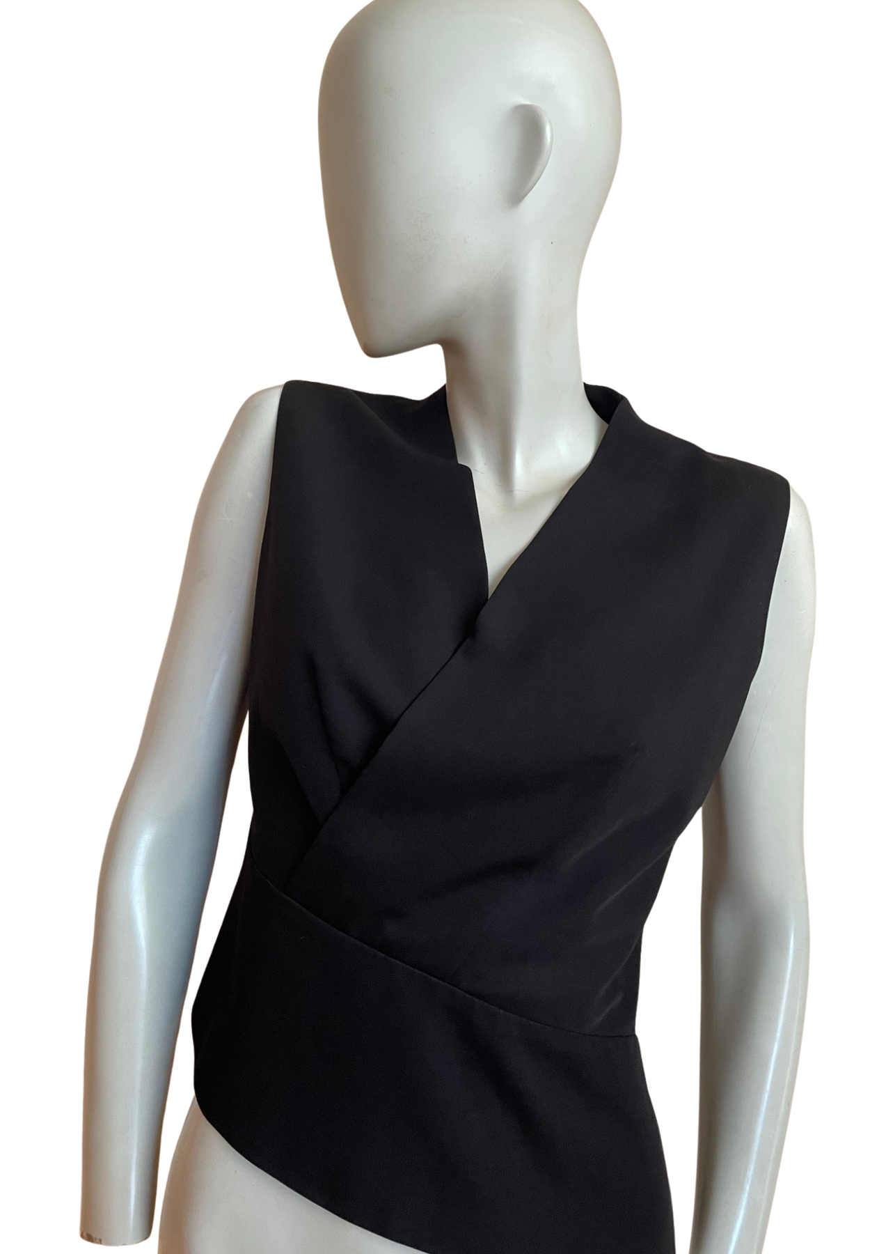 Ce top noir sans manches au décolleté asymétrique est une pièce raffinée et moderne, parfaite pour sublimer une tenue professionnelle ou soirée 🌙✨.