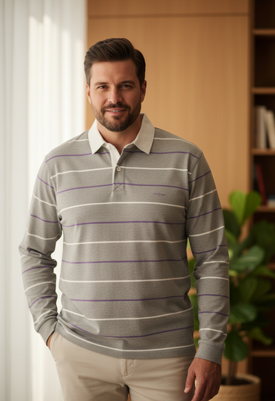 🩳 Polo rayé manches longues Taille XL 💜